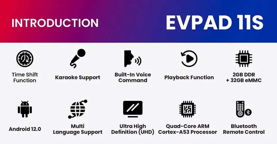 EVPAD 11S TV 박스의 주요 기능