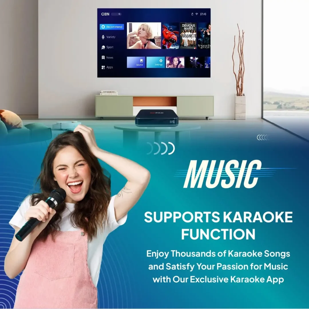 EVPAD 11S는 강력한 노래방 기능을 제공하여 거실을 생동감 넘치는 무대로 바꿔줍니다. 매주 업데이트되는 수천 곡의 최신 히트곡을 즐길 수 있어 가족 모임, 파티, 혼자 연습할 때도 완벽합니다. 안정적인 성능과 고음질 오디오로 몰입감 있는 최고의 노래 경험을 제공합니다.
